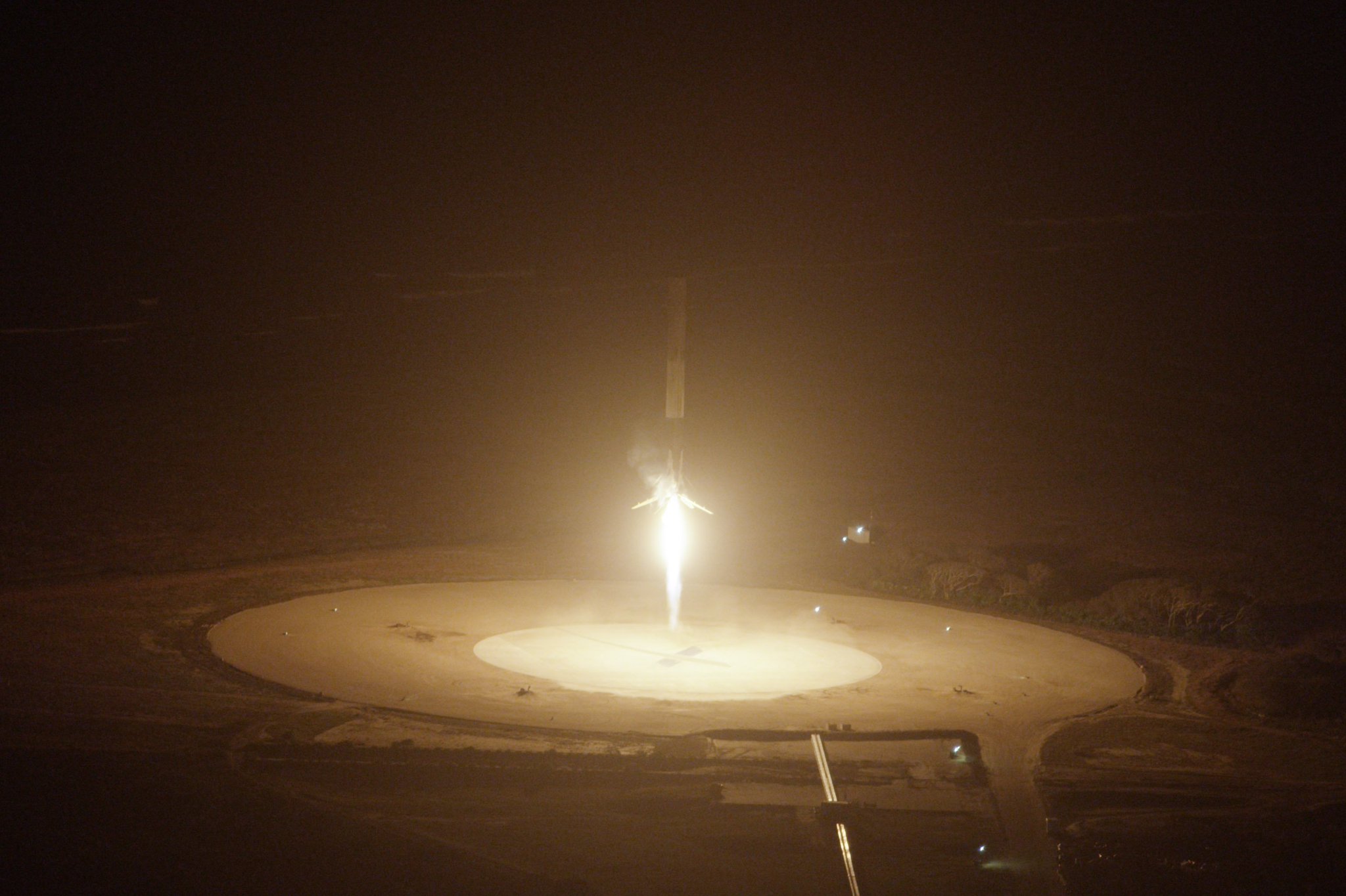 That's Falcon9_Mission20 first stage - after having reached 100 km, 5000 km/h, 16 km downstream, separating the second stage, turning around, and flying back - landing, vertically and under power, at Cape Canaveral almost exactly on the target.